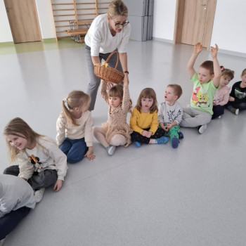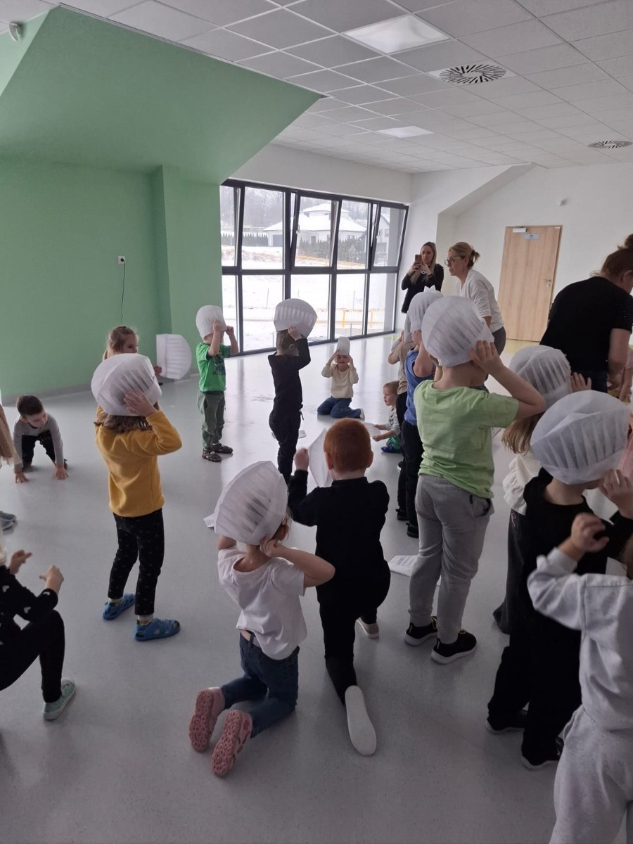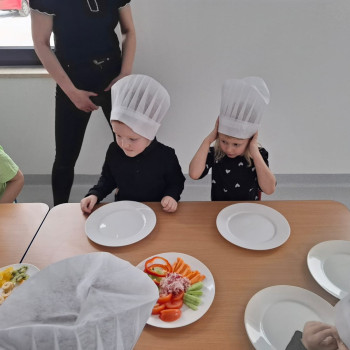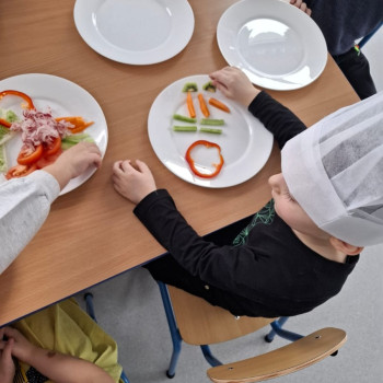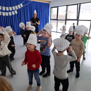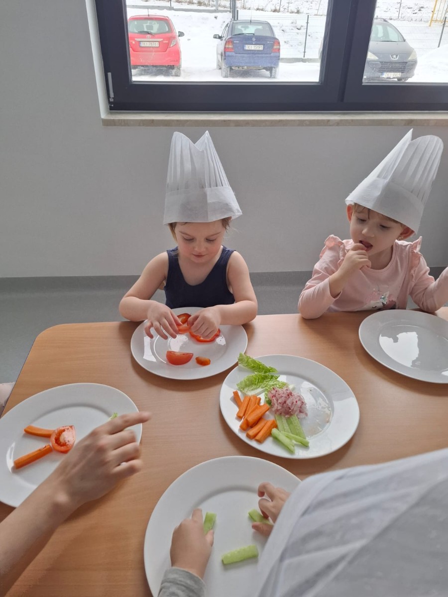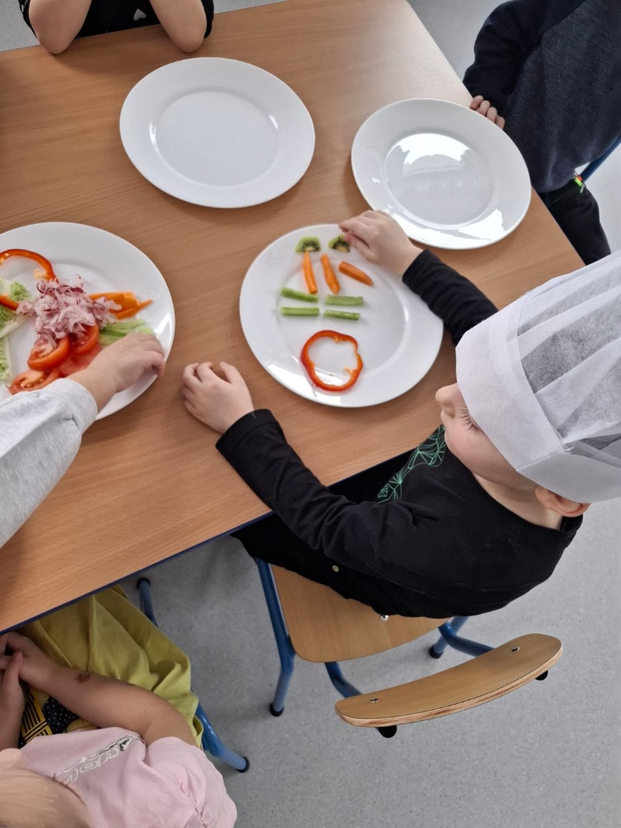 W naszym przedszkolu odbył się wyjątkowy Dzień Zdrowego Odżywiania. Dzieci dowiedziały się, jak ważną rolę w codziennym życiu odgrywa zdrowa i zbilansowana dieta. Nie zabrakło także licznych zabaw ruchowych, które pokazały, że aktywność fizyczna jest równie istotna dla zdrowia. Dużym zainteresowaniem cieszyła się zabawa sensoryczna, podczas której dzieci rozpoznawały warzywa i owoce ukryte w pudełku wyłącznie za pomocą zmysłu dotyku. Przedszkolaki miały również możliwość wcielenia się w małych kucharzy, zakładając czapki kucharskie. Zwieńczeniem dnia była degustacja „potworków” z warzyw i owoców, które dzieci własnoręcznie przygotowały na talerzach. Było to nie tylko smaczne, ale również bardzo kreatywne doświadczenie. Ten dzień dostarczył dzieciom wiele radości i cennych informacji na temat zdrowych nawyków żywieniowych.