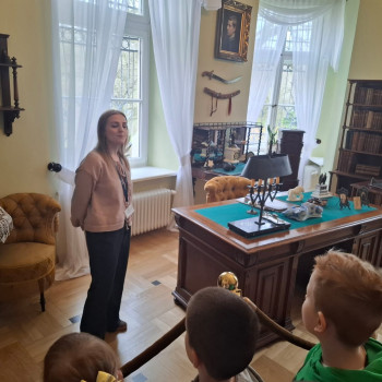 Dzieci z zachwytem podziwiały piękny pałacyk, który pisarz otrzymał w prezencie od narodu polskiego. To była nasza pierwsza, wspólna lekcja historii w tak malowniczym otoczeniu. Przedszkolaki z zaciekawieniem przyglądały się ogromnemu dębowemu biurku i bibliotece pełnej starych ksiąg. Dowiedzieliśmy się, że to właśnie tutaj powstały przygody Stasia i Nel. Podczas warsztatów w Muzeum dzieci tworzyły własne, kolorowe, drewniane jajka wielkanocne, które zabrały ze sobą do domu. Spacer aleją pełną wiekowych drzew był idealnym dopełnieniem naszej przygody. Przedszkolaki szukały śladów natury w zabytkowym parku i cieszyły się świeżym powietrzem w otoczeniu oblęgorskiej przyrody.