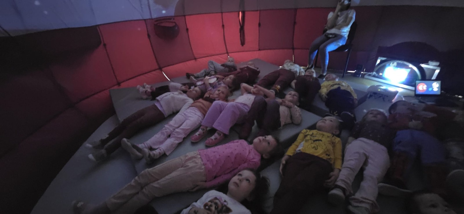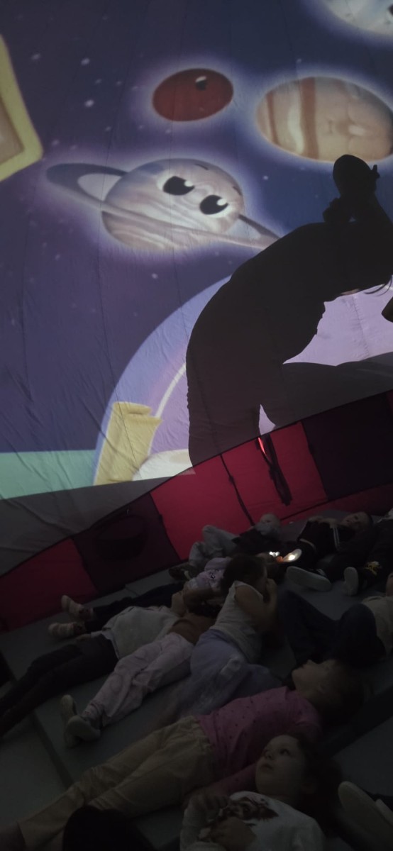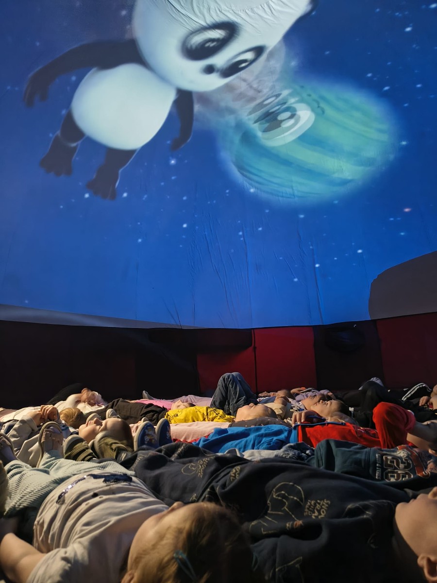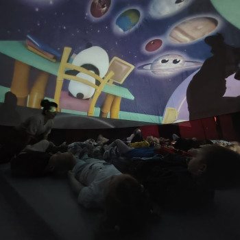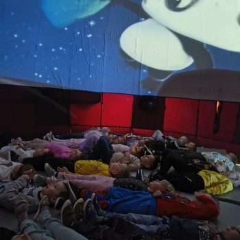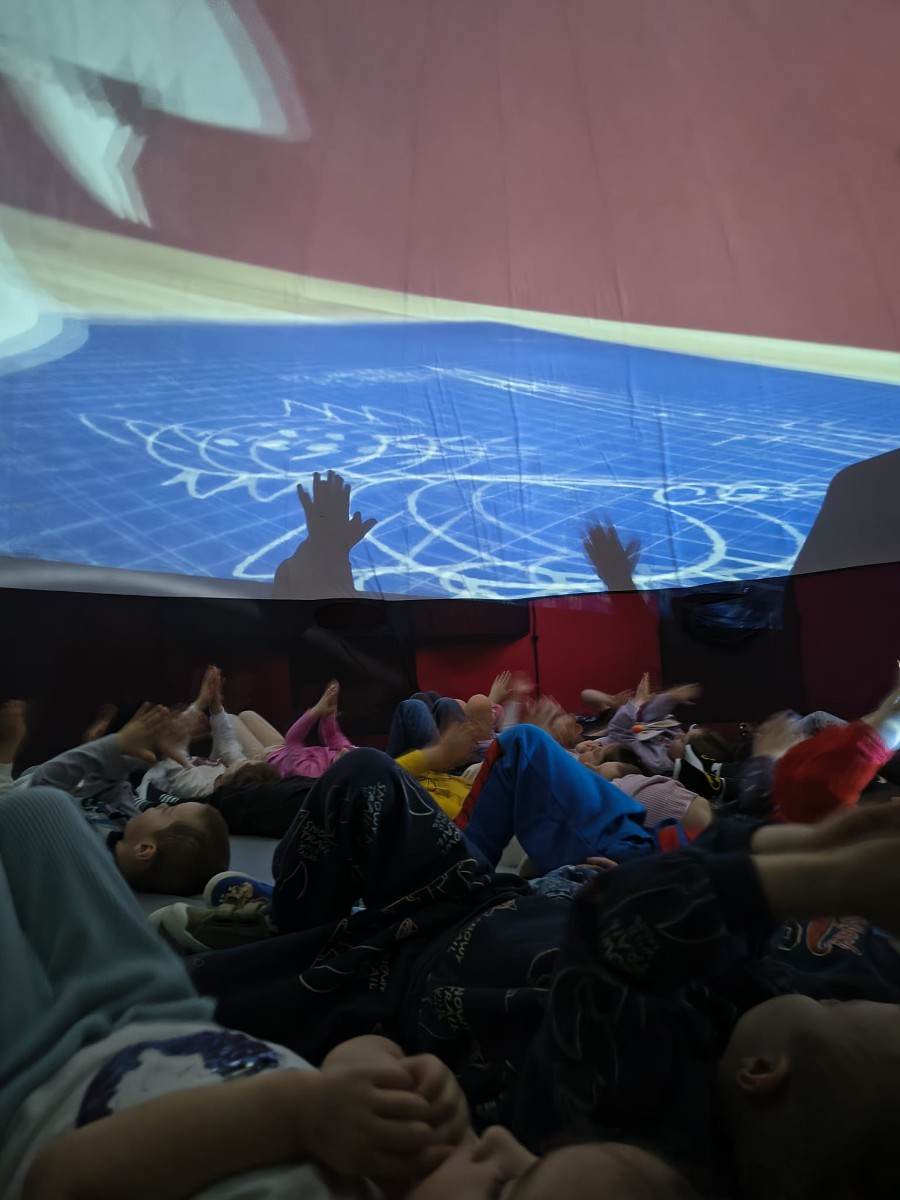 W dniu 10.04.2026 r. kosmos zawitał do naszego przedszkola! Dzisiaj nasza sala zamieniła się w prawdziwe międzygalaktyczne centrum dowodzenia dzięki wizycie mobilnego planetarium. Dzieci z zapartym tchem oglądały gwiazdy, planety i uczyły się o tajemnicach wszechświata, nie wychodząc z budynku. To była magiczna lekcja astronomii, która rozbudziła w nas ogromną ciekawość świata!