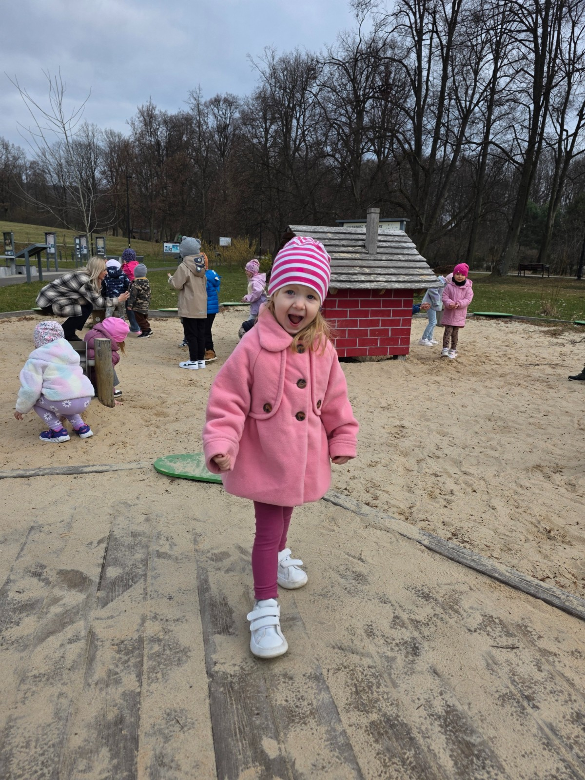 Dzieci wzięły udział w spacerze na ścieżkę dydaktyczną w Oblęgorku, gdzie obserwowały przyrodę i poznawały najbliższe otoczenie. Podczas wyjścia rozwijały ciekawość świata oraz uczyły się zasad bezpiecznego poruszania się poza przedszkolem. Miały także okazję do wspólnej zabawy, co sprzyjało integracji i radosnemu spędzaniu czasu.